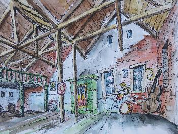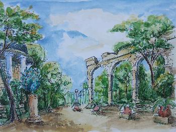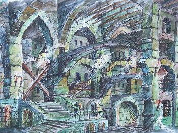 Für die Bühnenprojektionen zum Sommernachtstraum hat sich Werner Kiesel nochmals selbst übetroffen und Aschaffenburger Veduten in eine phantastisch-poetische Zauberwelt verwandelt.